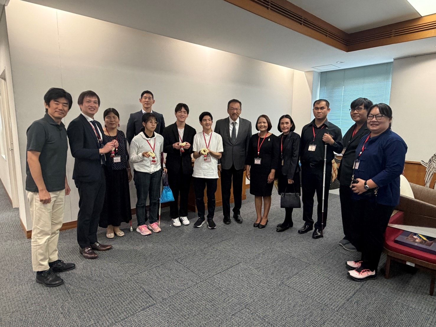 ในโอกาสนี้ นางกรกนก ศิริวงษ์ ผู้อำนวยการมูลนิธิธรรมิกชนเพื่อคนตาบอดในประเทศไทย ในพระบรมราชูปถัมภ์ พร้อมด้วยคณะผู้บริหาร ประกอบด้วย รองผู้อำนวยการฝ่ายบริหารงานบุคคล, รองผู้อำนวยการฝ่ายบริหารงานวิชาการ และผู้ประสานงานต่างประเทศ ได้นำคณะแขกจากญี่ปุ่นเดินทางเข้าเยี่ยมคารวะและสวัสดีปีใหม่ ท่านเอกอัครราชทูตญี่ปุ่น ณ สถานเอกอัครราชทูตญี่ปุ่นประจำประเทศไทย กรุงเทพมหานคร