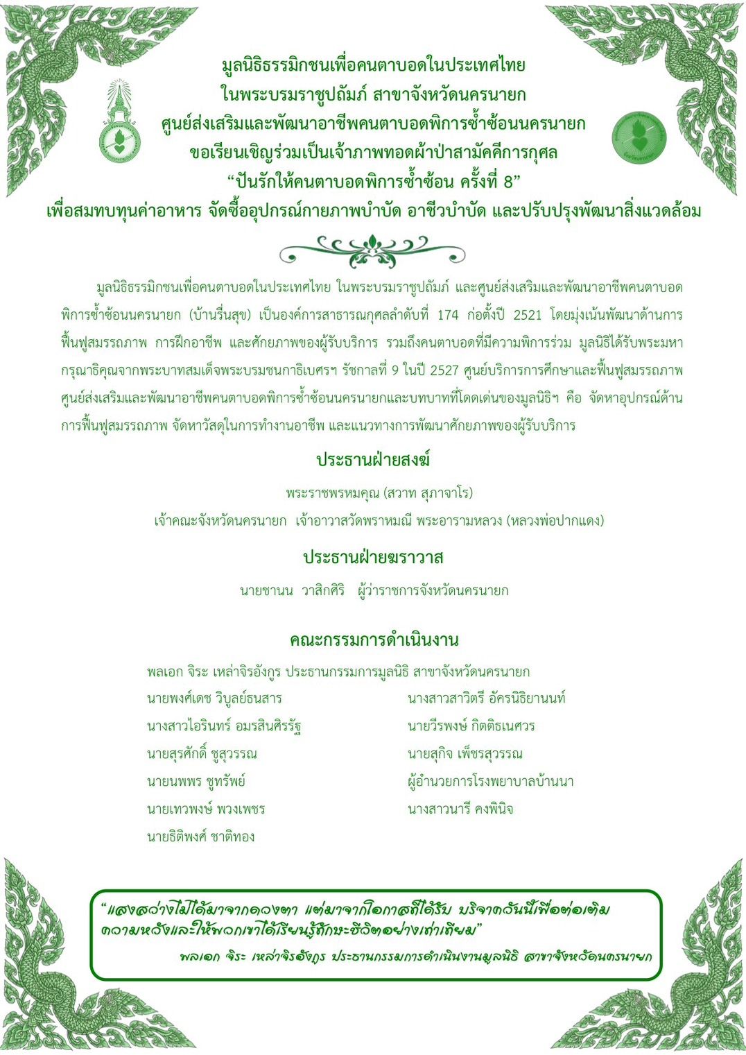 ทอดผ้าป่าสามัคคีการกุศล “ปันรักให้คนตาบอดพิการซ้ำซ้อน” ครั้งที่ 8