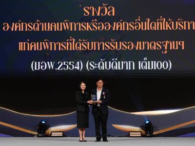 นายประสิทธิ์ อำพิมพ์ รักษาการผู้จัดการมูลนิธิธรรมิกชนเพื่อคนตาบอดในประเทศไทย ในพระบรมราชูปถัมภ์ สาขาจังหวัดเชียงราย เข้ารับโล่รางวัลเกียติคุณ องค์กรด้านคนพิการหรือองค์กรอื่นใคที่ให้บริการแก่คนพิการ